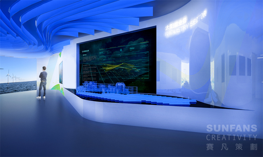 展廳設(shè)計(jì)立足中廣核集團(tuán)傳播基礎(chǔ),通過(guò)展現(xiàn)中廣核集團(tuán)及新能源公司的發(fā)展歷程、業(yè)務(wù)布局及核心成果,突出新能源公司堅(jiān)持不懈、勇于開(kāi)拓、敢于擔(dān)當(dāng)?shù)母镄戮瘛?
