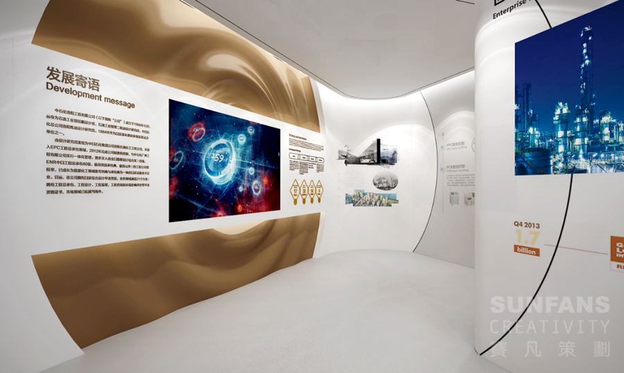 賽凡根據(jù)企業(yè)石油文化,溯本求源,提煉出“煉化的智慧”這一主題,并圍繞“時(shí)勢(shì)造”、“源自然”、“化未來(lái)”三個(gè)不同板塊,借助現(xiàn)代數(shù)字多媒體技術(shù)手段,對(duì)企業(yè)發(fā)展歷程、風(fēng)采文化、先進(jìn)技術(shù)等方面進(jìn)行了精彩演繹。