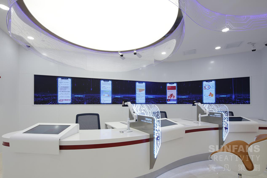 賽凡設(shè)計(jì)團(tuán)隊(duì)根據(jù)5G概念為契機(jī),從空間布局,多媒體技術(shù)融合應(yīng)用及地域文化特色展示等方面進(jìn)行整體方案設(shè)計(jì),突破傳統(tǒng)網(wǎng)點(diǎn)形象,打造富有科技感的5G+文旅主題場(chǎng)景的銀行網(wǎng)點(diǎn),塑造全新的銀行品牌形象,擴(kuò)大了品牌影響力。