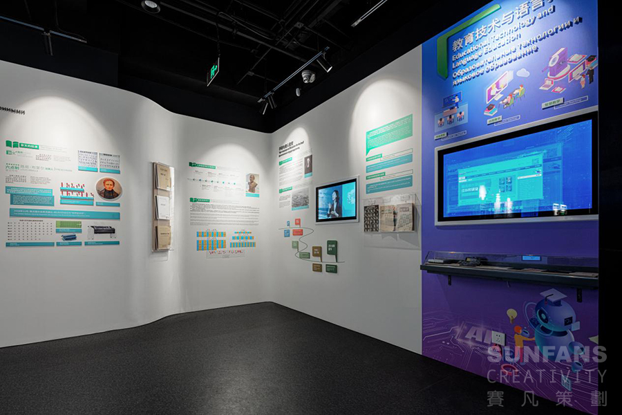 語言對于人類有著十分重要的意義,在語言博物館的建設(shè)上,賽凡團(tuán)隊(duì)深入探究語言的深刻含義,通過數(shù)字新媒體技術(shù)+多元化內(nèi)容呈現(xiàn)+有趣的內(nèi)容線索+多維度的傳播聯(lián)接,構(gòu)建有趣的故事內(nèi)核、多層次的體驗(yàn)觀感、多維度的院校品牌的聯(lián)動,在滿足常規(guī)研學(xué)基地屬性的基礎(chǔ)上,使博物館與校園間構(gòu)建密不可分的關(guān)聯(lián)性,呈現(xiàn)北外專業(yè)品牌,成為彰顯北外魅力的獨(dú)特符號。