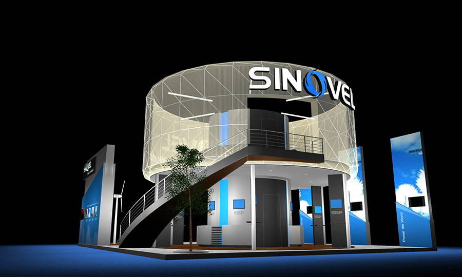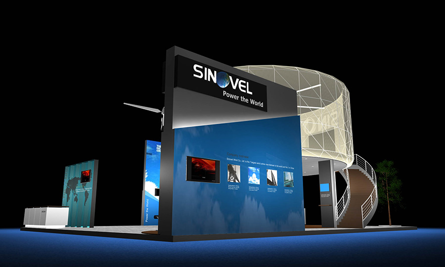 設(shè)計團隊以“專業(yè)、國際、可信”為核心理念,制定了針對風電行業(yè)及海外執(zhí)行的展臺方案: