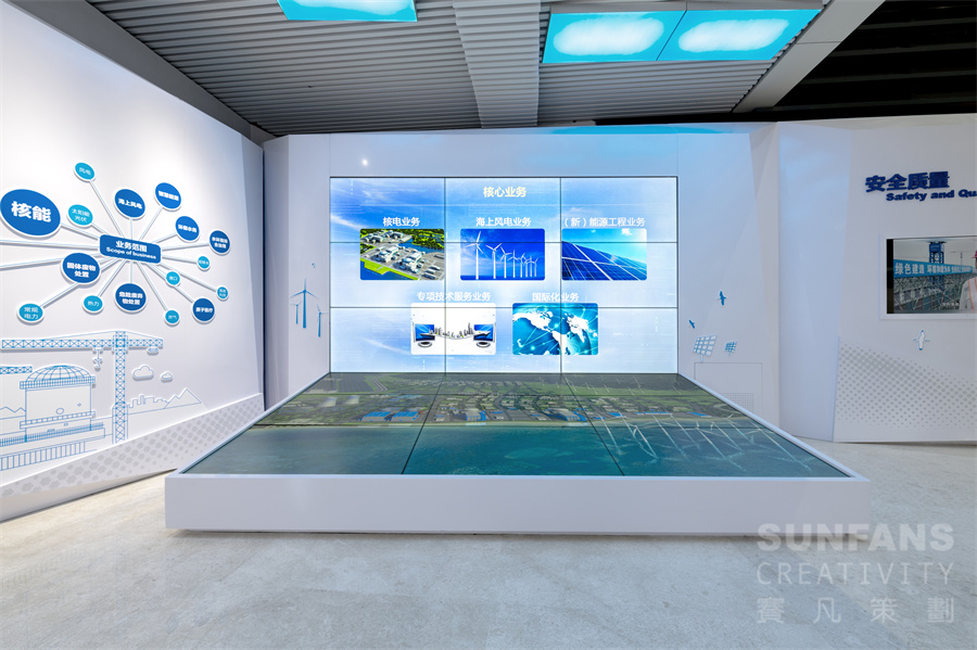 在展示內(nèi)容上,工程公司展廳區(qū)別于各核電業(yè)主公司展廳的科普和公司介紹功能,主要以市場(chǎng)化為導(dǎo)向,推介公司業(yè)務(wù)能力和水平,促進(jìn)公司市場(chǎng)化業(yè)務(wù)的開拓。