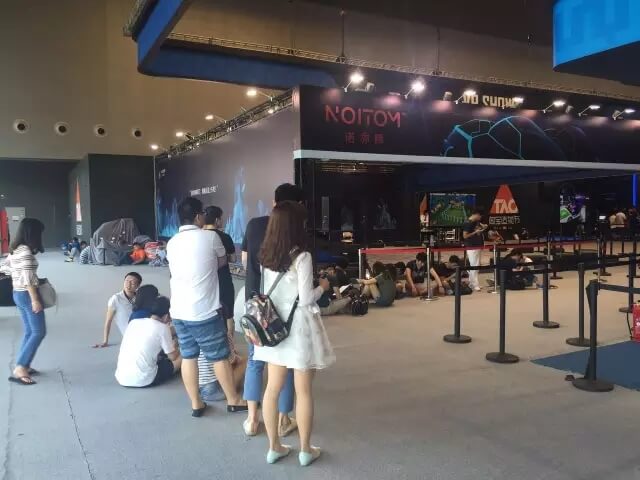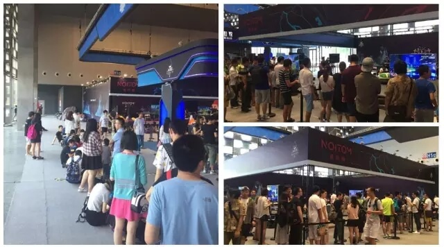 距離開始體驗(yàn)還有一段時(shí)間,但是諾亦騰展位前的體驗(yàn)者已經(jīng)排到了轉(zhuǎn)角