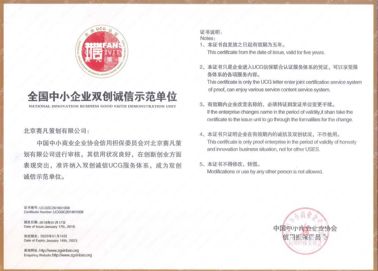 首先熱烈祝賀賽凡獲得全國(guó)中小企業(yè)雙創(chuàng)誠(chéng)信示范單位??鬃釉唬赫\(chéng)者,乃做人之本。人無(wú)信,不知其可。誠(chéng)信,是做人的基本原則,也是做事的基本原則,更是一個(gè)企業(yè)不可缺少的素質(zhì)。賽凡在成立12周年以來(lái)一直本著以誠(chéng)為本的原則對(duì)待每一位合作伙伴,以契約精神嚴(yán)格去履行與客戶的每一個(gè)約定,也正因如此賽凡與許多客戶建立起了長(zhǎng)久的合作。