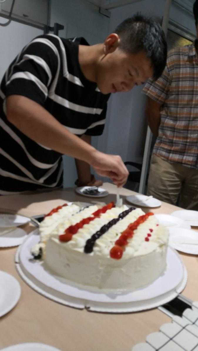壽星公為我們切蛋糕,最后大家都著急,自己切起來了