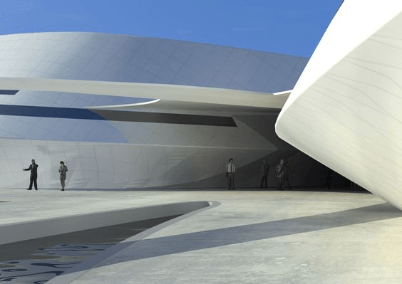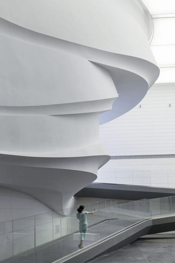 依循以煤為核心的產業(yè)構成,造型元素從煤的形態(tài)中提取,進行組合變形,形成有力量和視覺沖擊力的整體空間。