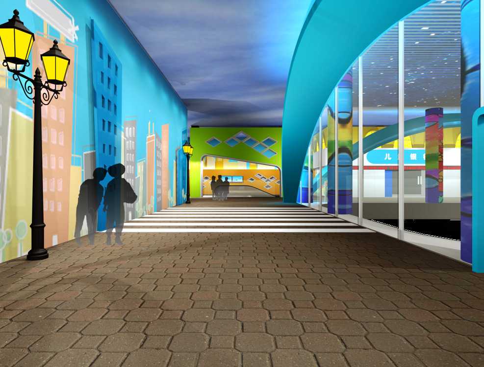 在整體的設(shè)計色調(diào)上,賽凡使用活潑明亮的色彩格調(diào),大面積的明黃、淡綠、亮藍(lán)等顏色,讓婦女兒童館給人一種溫馨、歡快的感覺。設(shè)計師在體驗館內(nèi)部鋪設(shè)各種彩色、卡通的元素的筆畫,讓兒童更有玩耍嬉戲的氣氛,造就舒服的嬉戲空間。