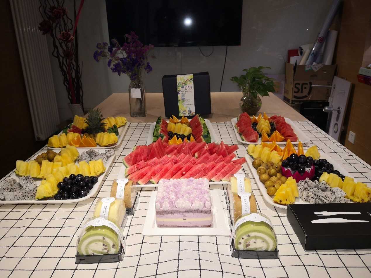 這次公司為我們準(zhǔn)備了新鮮的水果、干果還有美味的生日蛋糕。生日會(huì)特意請(qǐng)來(lái)了專業(yè)的茶歇公司,為我們帶來(lái)了各種各樣的水果。