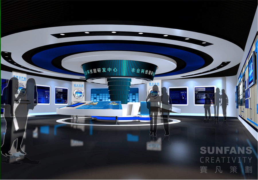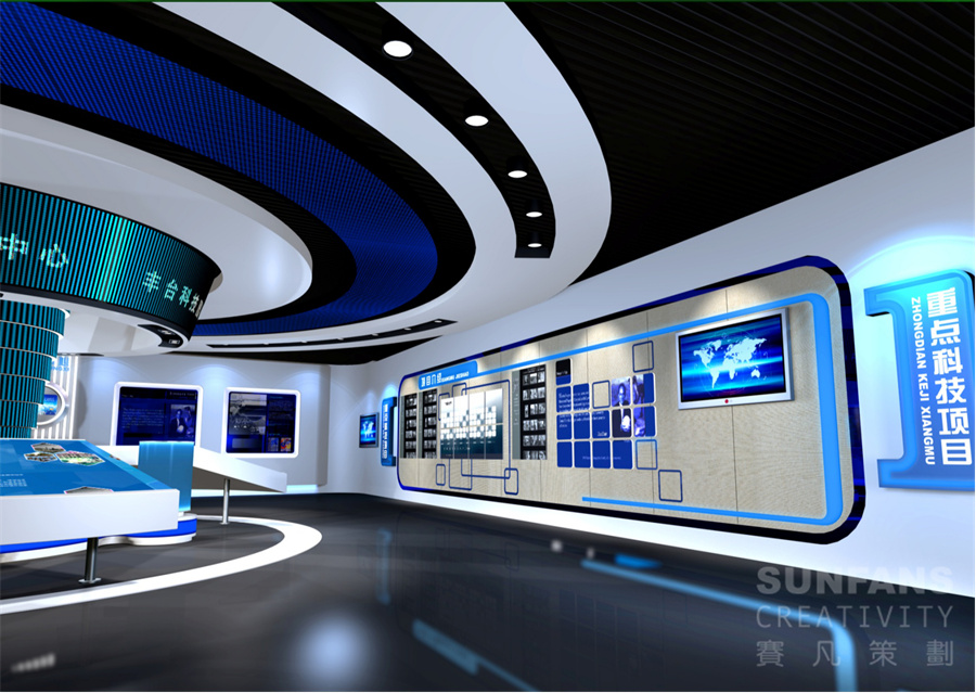 科技園展廳設計要注重長遠規(guī)劃,賽凡設計力求打破傳統(tǒng)企業(yè)展示風格,更加注重展廳的體驗感和互動性,應用了較多的高科技手段,綜合以多媒體影像、燈箱、模型、浮雕等手段,結合展示內(nèi)容,營造出了科技、現(xiàn)代的展示風格。