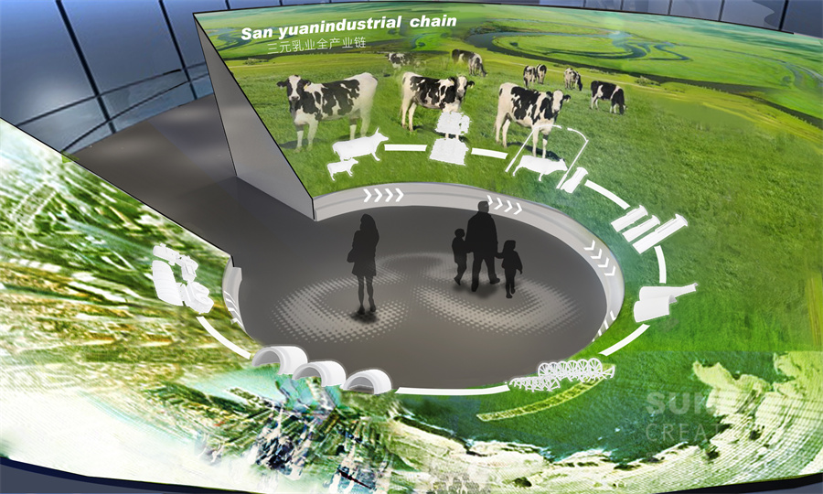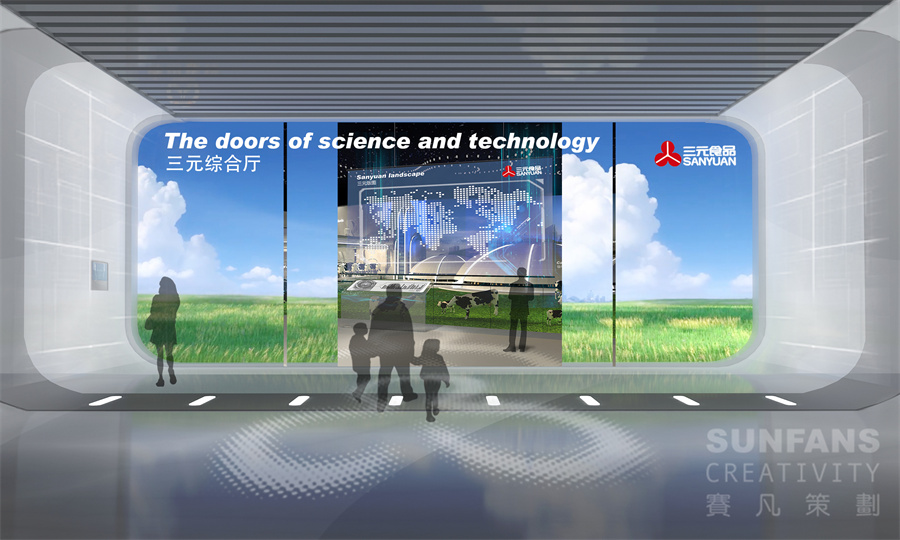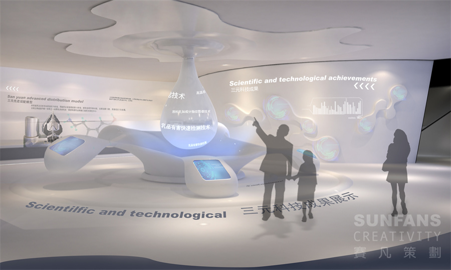 在奶制品市場上,質(zhì)量是底線,品牌的信任度尤為重要。賽凡設(shè)計的三元食品品牌體驗廳,借鑒了工業(yè)旅游的概念,將三元品質(zhì)與創(chuàng)新貫穿全產(chǎn)業(yè)鏈展示始終,體驗式展示了牧場養(yǎng)殖、質(zhì)量管理、創(chuàng)新研發(fā)等各個層面,并通過趣味化場景營造,讓參觀者在游玩中了解企業(yè)的生產(chǎn)流程、先進工藝和企業(yè)文化,以切實提振消費信心,提高品牌認同。