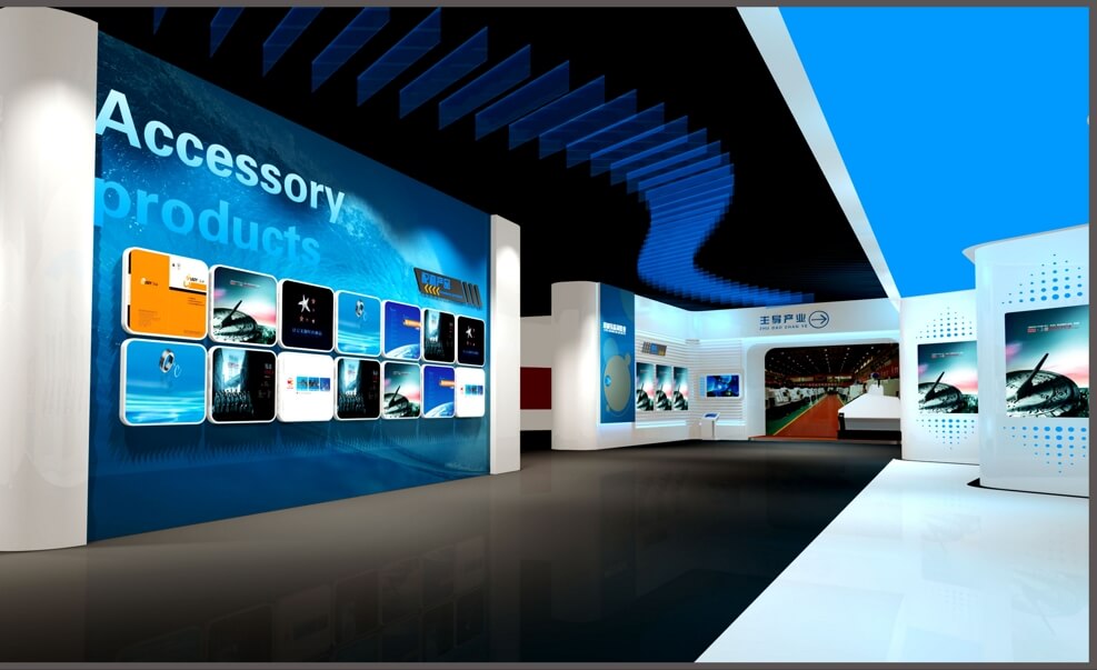 從整體上提升展廳的品位,可以通過道具,裝飾等,讓展廳變得與眾不同。也可以使用色彩上調(diào)整遠近感,打造立體效果,拉伸空間感。