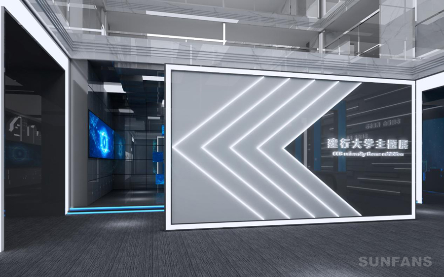 本項目是建行大學的臨展廳,作為一所全新面貌的新型高校,建行大學展廳更著眼于展示新時代高校形象,表達校領導對于未來的美好希冀與高瞻遠矚,以及對高校遠大藍圖的科學規(guī)劃。