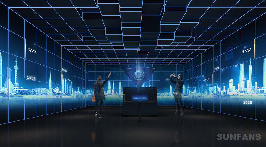 如今,隨著影像表現(xiàn)技術(shù)的成熟,全數(shù)字展示在更多展廳中得到應(yīng)用。賽凡為金恪集團(tuán)設(shè)計(jì)的全數(shù)字展廳集成了多項(xiàng)新式展示技術(shù),如全息投影、互動(dòng)觸控等,通過(guò)視頻、聲音、動(dòng)畫(huà)等媒體組合應(yīng)用,給觀眾帶來(lái)了高科技的視覺(jué)震撼感,能夠讓觀眾對(duì)展示產(chǎn)生更直觀的認(rèn)識(shí),增強(qiáng)企業(yè)認(rèn)同,提高企業(yè)影響力。