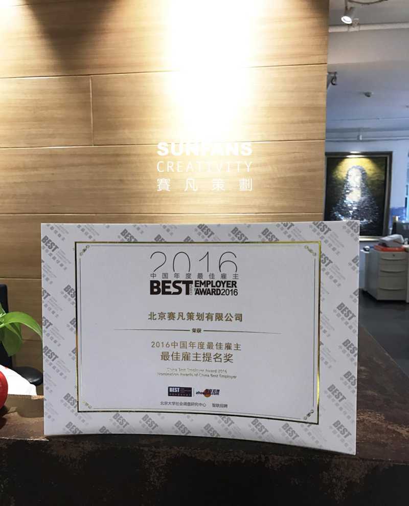 北京賽凡策劃有限公司獲得2016年度最佳雇主獎(jiǎng)提名。