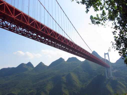 壩陵河大橋位于貴州省黔西地區(qū)高原重丘區(qū),是滬瑞國道主干線上跨越壩陵河大峽谷的第一座特大型橋梁。居“國內(nèi)第一,世界第六”的大跨徑鋼桁梁懸索橋,是貴州有史以來修建的技術(shù)含量最高的橋梁。