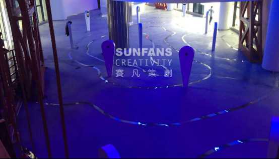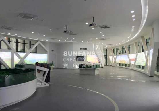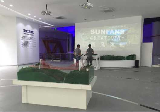 壩陵河大橋為了展現(xiàn)壩陵河大橋地理上建造的難度,將海拔線,坐標(biāo)點按比例放于宣教館內(nèi)。