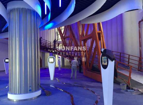 設(shè)計師將壩陵河大橋復(fù)制于宣教館內(nèi),觀者可穿梭于其中,與之近距離接觸,了解橋梁建造工藝。