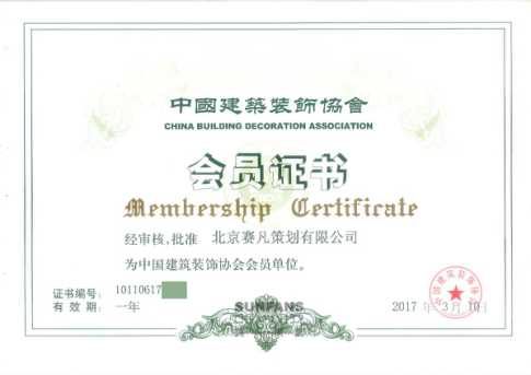 新鮮出爐!北京賽凡策劃成為中國(guó)建筑裝飾協(xié)會(huì)會(huì)員。