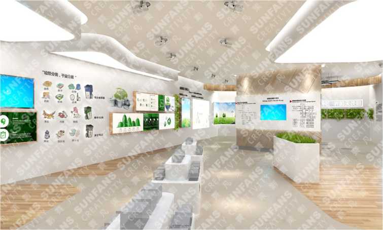 賽凡順利承接該展示大廳的展示設(shè)計與工程,通過專業(yè)的展示手法,從視覺、聽覺、觸覺等多方面對使館處的工作范疇和先進的垃圾分類進行講述。根據(jù)使館處的工作特性和主要職責在展廳設(shè)計方面進行特別的策劃,積極響應習近平總書記的重要講話:提出普遍推行垃圾分類制度,關(guān)系13億多人生活環(huán)境改善,關(guān)系垃圾能不能減量化、資源化、無害化處理。要加快建立分類投放、分類收集、分類運輸、分類處理的垃圾處理系統(tǒng),形成以法治為基礎(chǔ)、政府推動、全民參與、城鄉(xiāng)統(tǒng)籌、因地制宜的垃圾分類制度,努力提高垃圾分類制度覆蓋范圍。