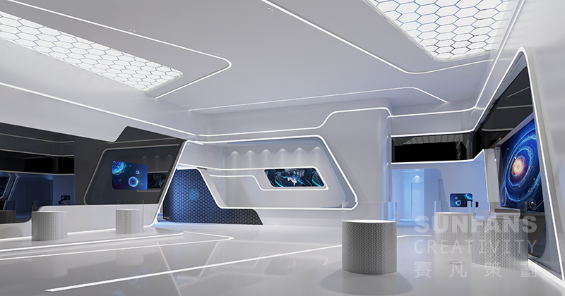 為了提升展廳的可參觀性在設(shè)計(jì)階段項(xiàng)目團(tuán)隊(duì)就可以設(shè)置移步易景的巧思,突出展廳焦點(diǎn)、主次分明,增加空間的層次的豐富性,制造亮點(diǎn)和驚喜,來營造出具有鮮明特色的趣味性展廳。